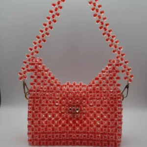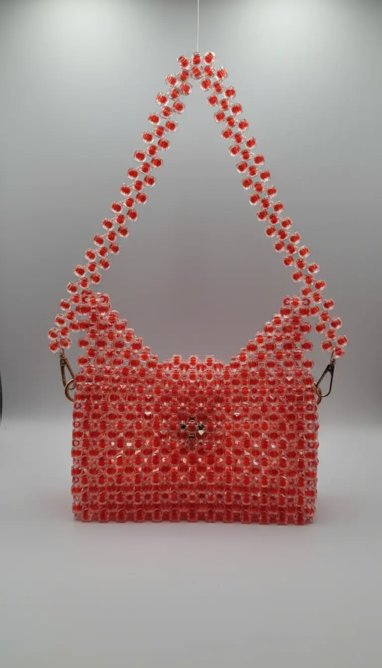 This handcrafted handbag is a masterclass in texture and dimension, featuring an intricate, all-over beaded construction. Each individual sphere catches the light, creating a shimmering, multidimensional effect that shifts as the bag moves.