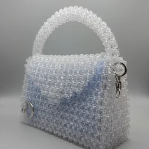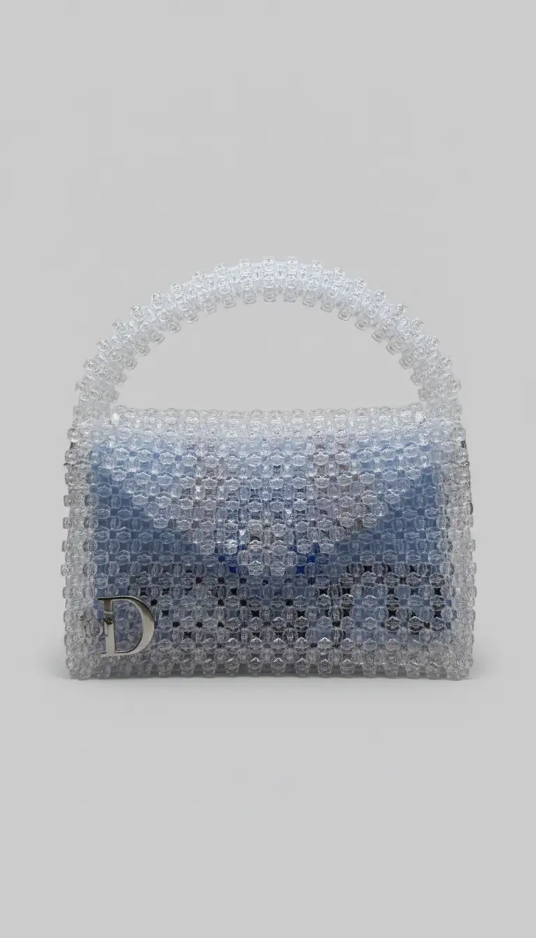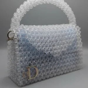 This handcrafted handbag is a masterclass in texture and dimension, featuring an intricate, all-over beaded construction. Each individual sphere catches the light, creating a shimmering, multidimensional effect that shifts as the bag moves.